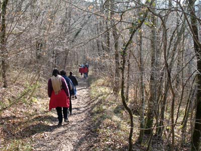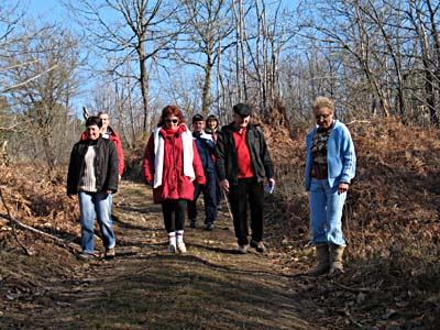 C’est par une belle matinée ensoleillée que 9 personnes se sont lancées sur les traces d’Evelyne qui nous a fait
