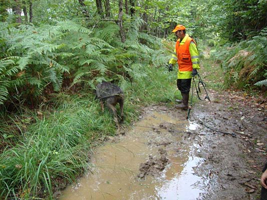 bois, sur des passages potentiels de grand gibier. Les traqueurs ont alors cherché les traces "fraîches" et les ont