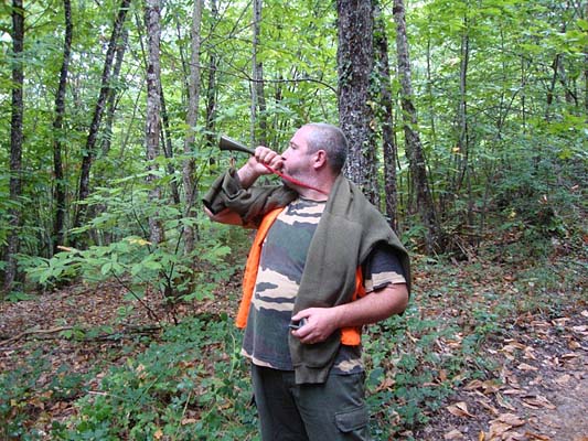 "musique" des seize chiens raisonnant dans les vallons et pentes boisées...