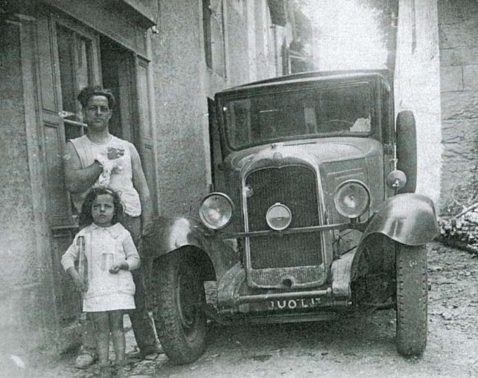 La première voiture Citroën de M. BEAUGIER devant la boulangerie,