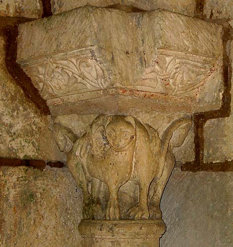 Cinq voussures, légèrement brisées, moulurées de tores, de cavets et de listels, retombent sur des piedroits formant retraite et sur des colonnettes à chapiteaux sculptés.