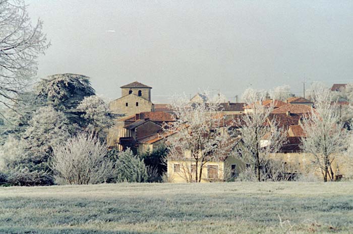 On aperçoit à gauche, dominant et majestueux, le fameux cèdre du village.