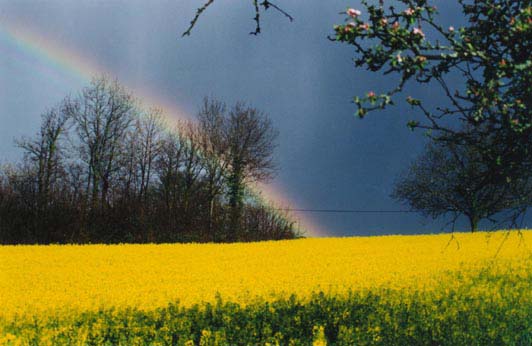 le signe de l'Alliance coiffant un champ de colza en fleurs...